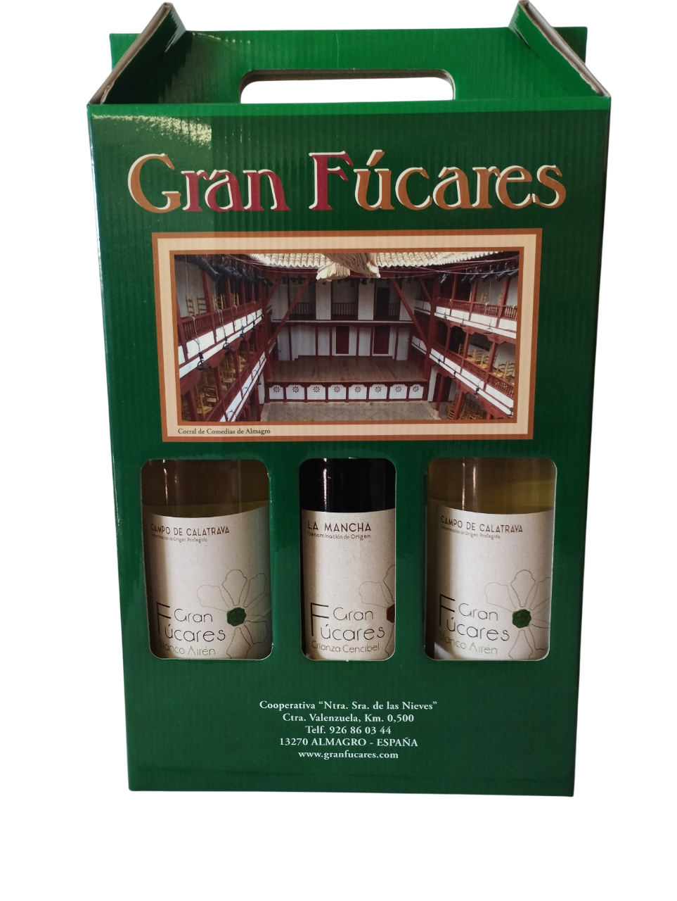 Estuche Lote 3 Botellas Gran Fúcares (2 Blanco Jóven Airen + 1 Tinto Crianza Cencibel)