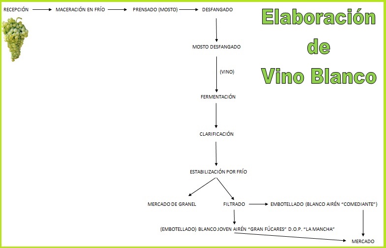 Una vez realizado este proceso, se pasa a fermentar a tanques de 60.000 litros en acero inoxidable, con temperatura controlada a 17ºC, y a la utilización de una levadura seleccionada, que le va a dar a la variedad airén la complejidad aromática que necesita.